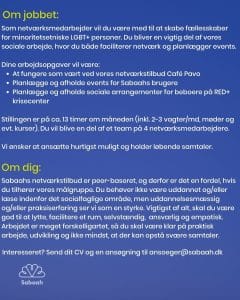 Er du vores nye netværksmedarbejder i København eller kender du et godt bud? Hjælp os gerne med at dele budskabet.